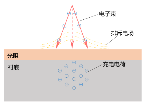 b.低能厚膠:導(dǎo)體或者半導(dǎo)體材料通常不會(huì)產(chǎn)生充電效應(yīng),但是對于厚的光阻(光阻一般不導(dǎo)電),或者低能電子束曝光(電子穿透深度有限)的情況下同樣會(huì)存在充電效應(yīng)。