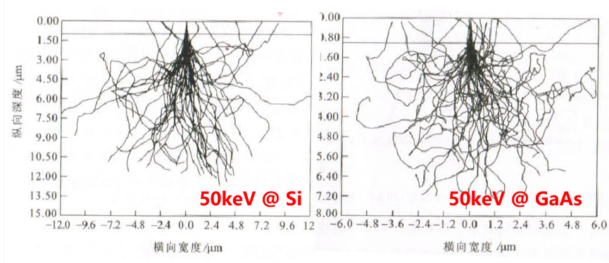 c.襯底材料:材料的原子序數(shù)越大,背散射影響區(qū)域越小。