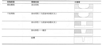 表1 濕法腐蝕和干法刻蝕的側(cè)壁剖面